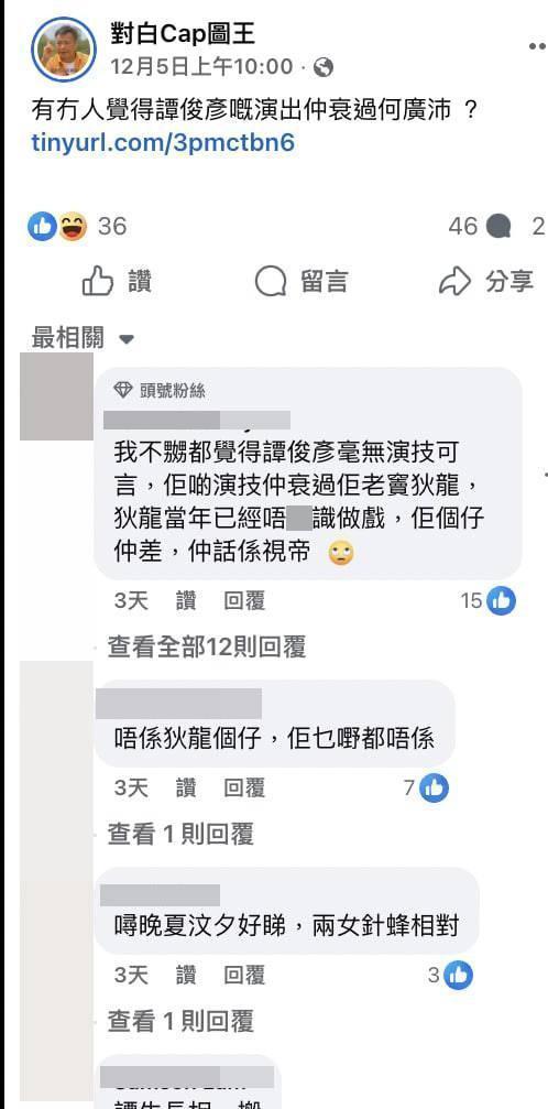 网友在讨论中不断将谭俊彦与何广沛作比较,普遍认为“比不上何广沛”。何广沛在分手戏中的细腻演技获得佘诗曼赞赏,她表示何广沛“一眼就睇得出我已经入咗戏,仲刻意同我保持距离,令我更专注投入拍呢场戏”。相反,谭俊彦的表现则被网民形容为“演技差、角色对剧情无帮助”,两人的演技水平和角色重要性形成强烈对比,令观众对剧集的人物安排产生质疑。