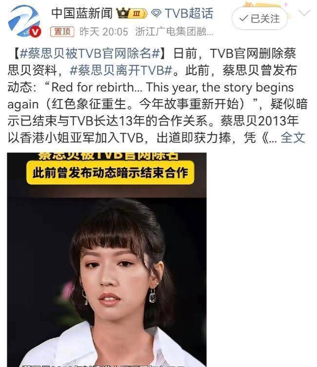 3月1日,TVB圈又出大新闻,实力派花旦蔡思贝突然冲上热搜,只不过这次可不是什么好事,而是她被TVB官网彻底除名,搜来搜去全是“查无此人”,直接坐实了她和老东家13年合约正式终结的传闻,消息一出,网友们瞬间炸了锅,议论纷纷。
